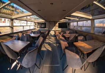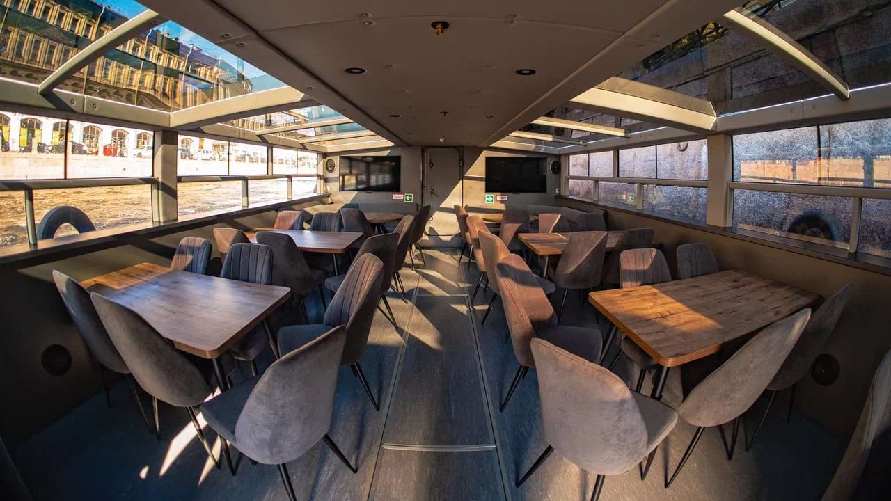 Уникальные технические возможности теплохода позволят пассажирам любоваться не только парадной Невой , но и заглянуть в самые удаленные уголки Санкт-Петербурга - теплоход проходит под всеми мостами!